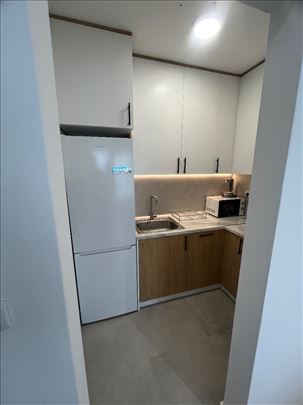 Stan se nalazi na odličnoj lokaciji u novijoj zgradi.Stan se sastoji iz ulaznog hodnika, kupatila ,spavaće sobe, kuhinje koja je potpuno opremljena,dnevne sobe sa trpezarijom i terase na koji se može izaći iz spavaće sobe i iz dnevne sobe. Stan je moderno opremljen. U blizini se nalaze sve što je neophodno za normalno funkcionisanje. Veliki broj marketa, škola , vrtić, domzdravlja.Odlična povezanost sa svim delovima grada. Stan se izdaje na minimalno rok od godinu dana. Obavezan je depozit u visini jedne kirije.